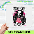 Funny Halloween Ghost Face DTF Transfer, Boo You Whore Shirt, Edgy Pop Culture Iron-On for Women & Teens, Ready to Press